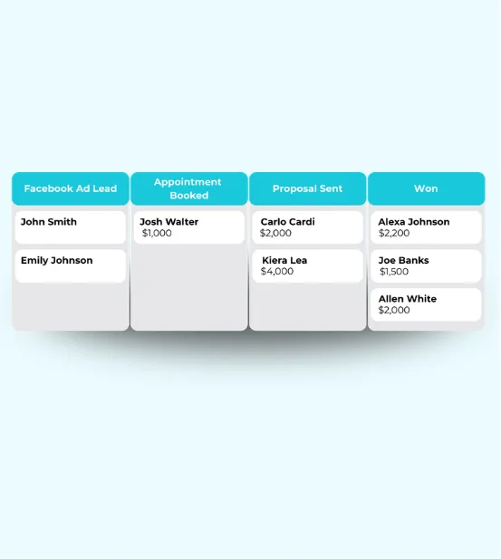 Track every lead from first contact to closing. Visual pipelines help you see exactly where each client is in the process and their $ value to you.